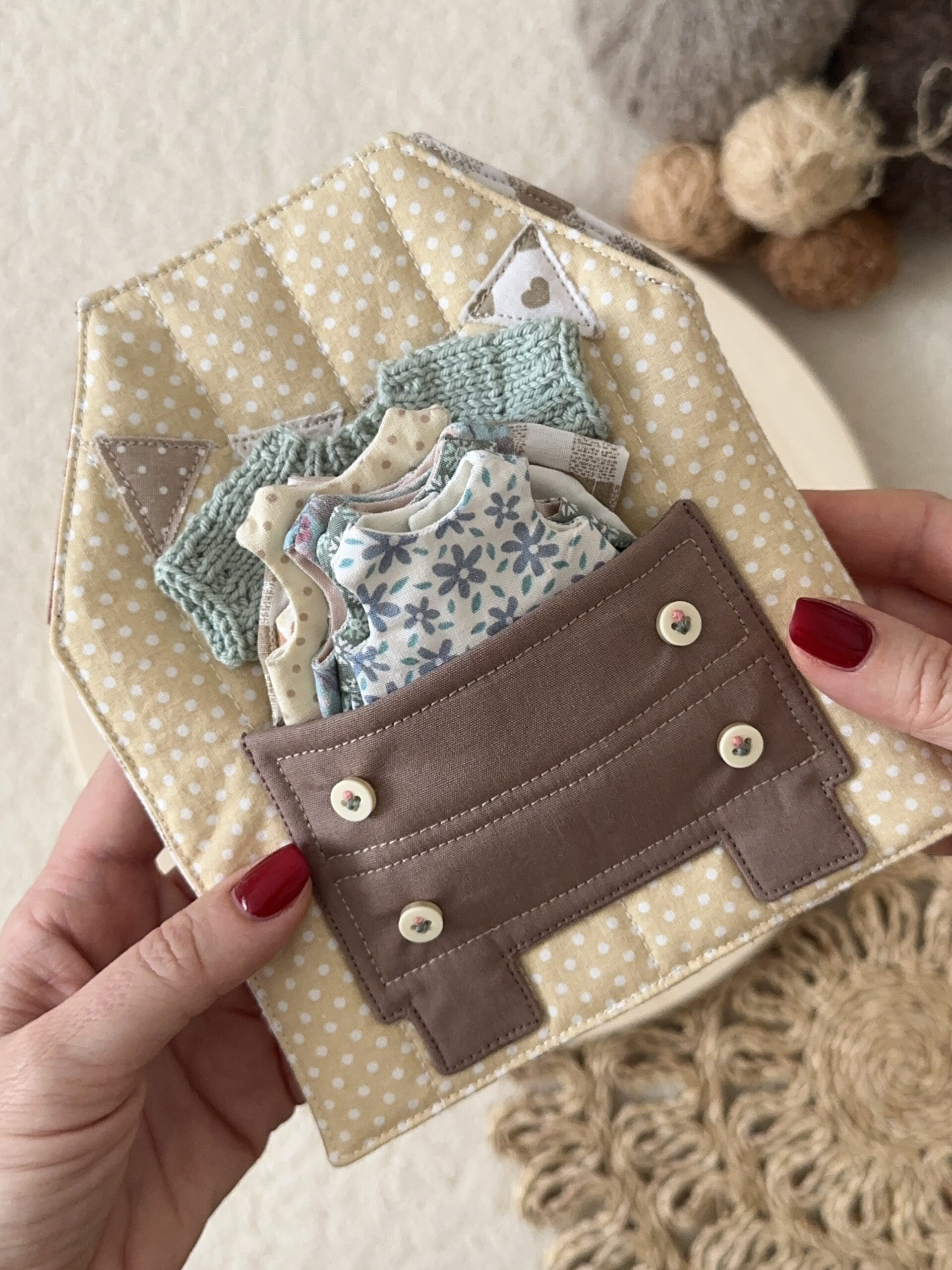 Ez a bájos kis ruhacsomag kifejezetten a textil babaházhoz és a hozzá tartozó babához készült, hogy még változatosabb legyen a szerepjáték.